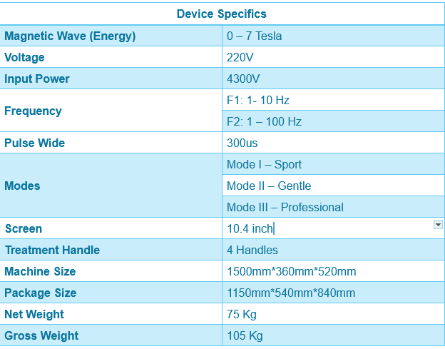 Designed specifically for High-Demand Aesthetic Needs, the device produces Supramaximal Muscle Contractions, simultaneously burning fat and building muscle. Whether the goal is Aesthetic Reshaping, Athletic Enhancement, Postpartum Recovery or Fat Loss, the device delivers Life-Changing results inculcated in your Body Contouring Treatment Regime with 30-minute sessions.